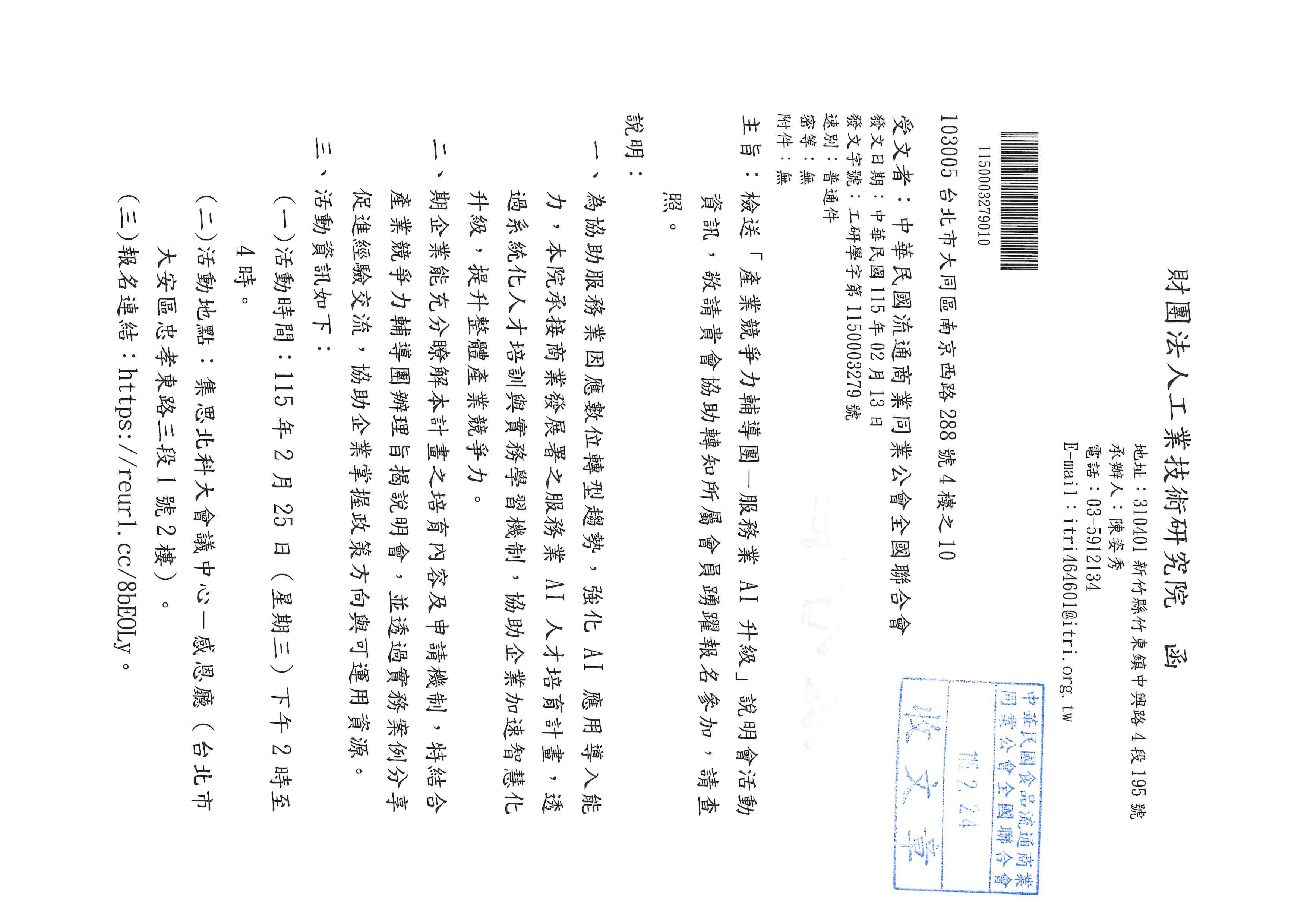 檢送「產業競爭力輔導團-服務業AI升級」說明會活動資訊,敬請貴會協助轉知所屬會員踴躍報名參加,請查照。