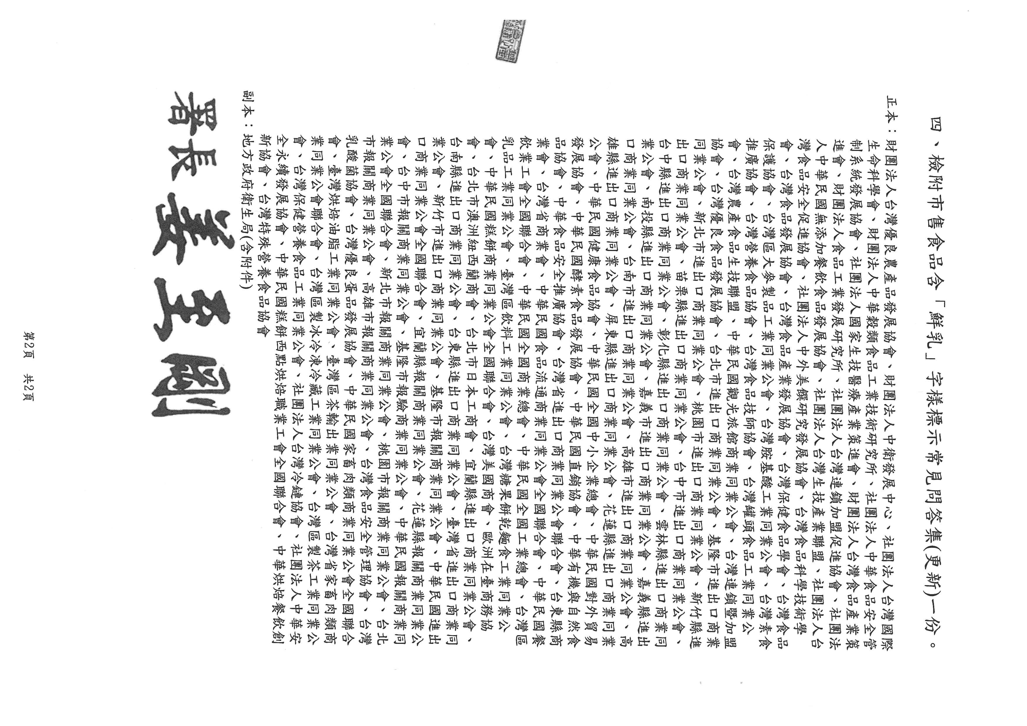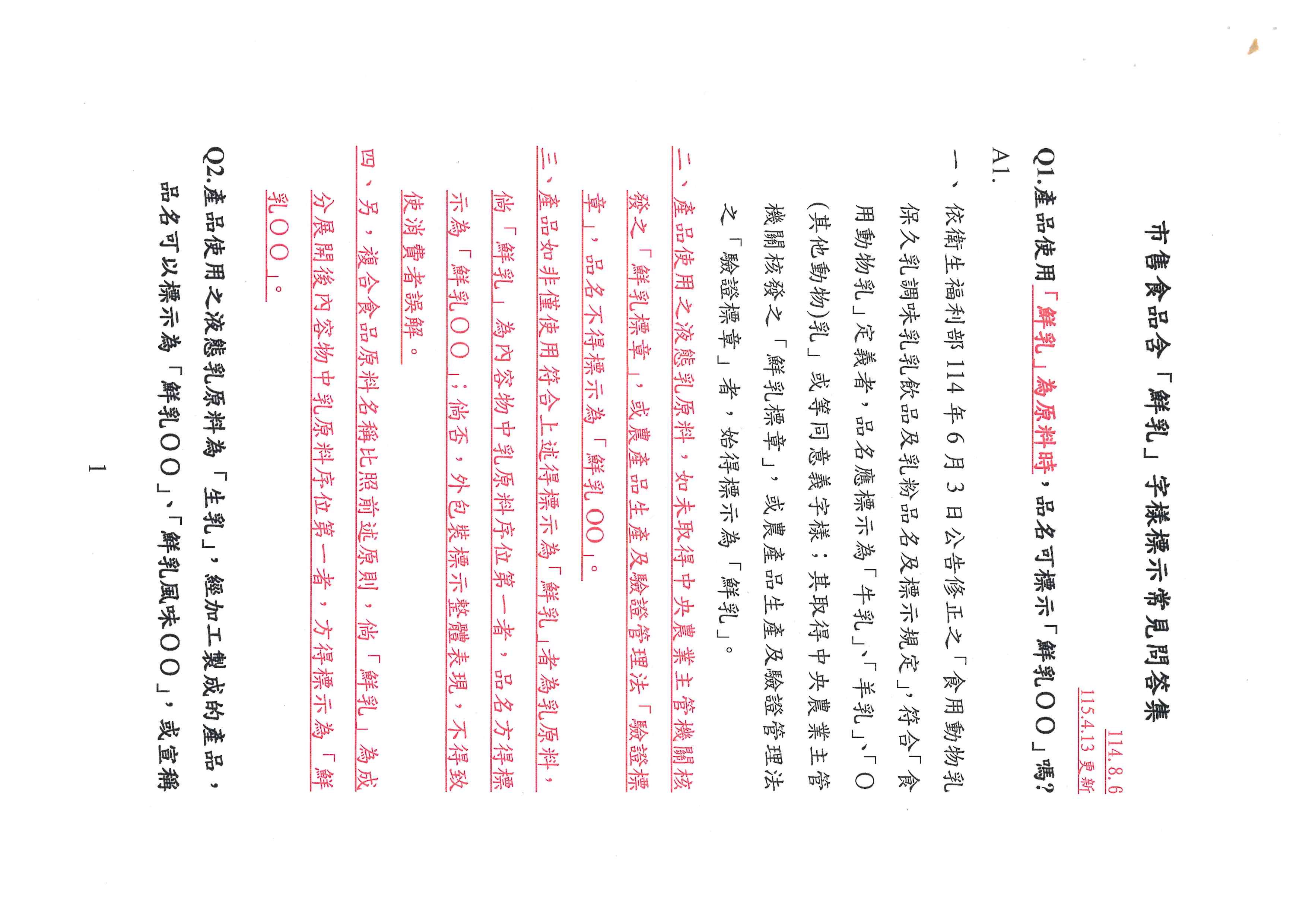 有關市售食品標示含「鮮乳」字樣者,請留意所使用之品名、內容物等標示之一致性,詳如說明,請查照並轉知所屬。
