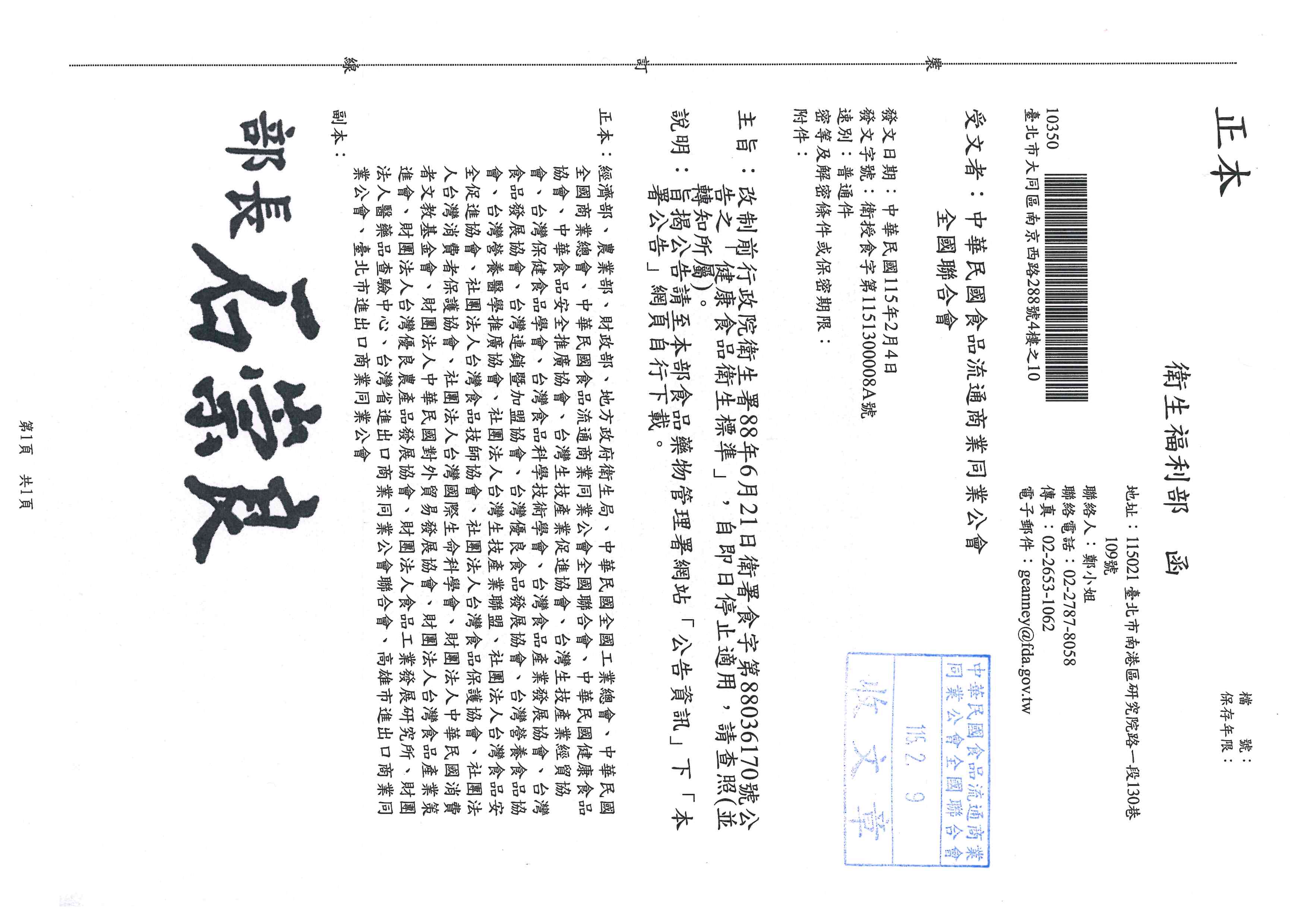 改制前行政院衛生署88年6月21日衛署食字第88036170號公告之「健康食品衛生標準」,自即日停止適用,請查照(並轉知所屬)。