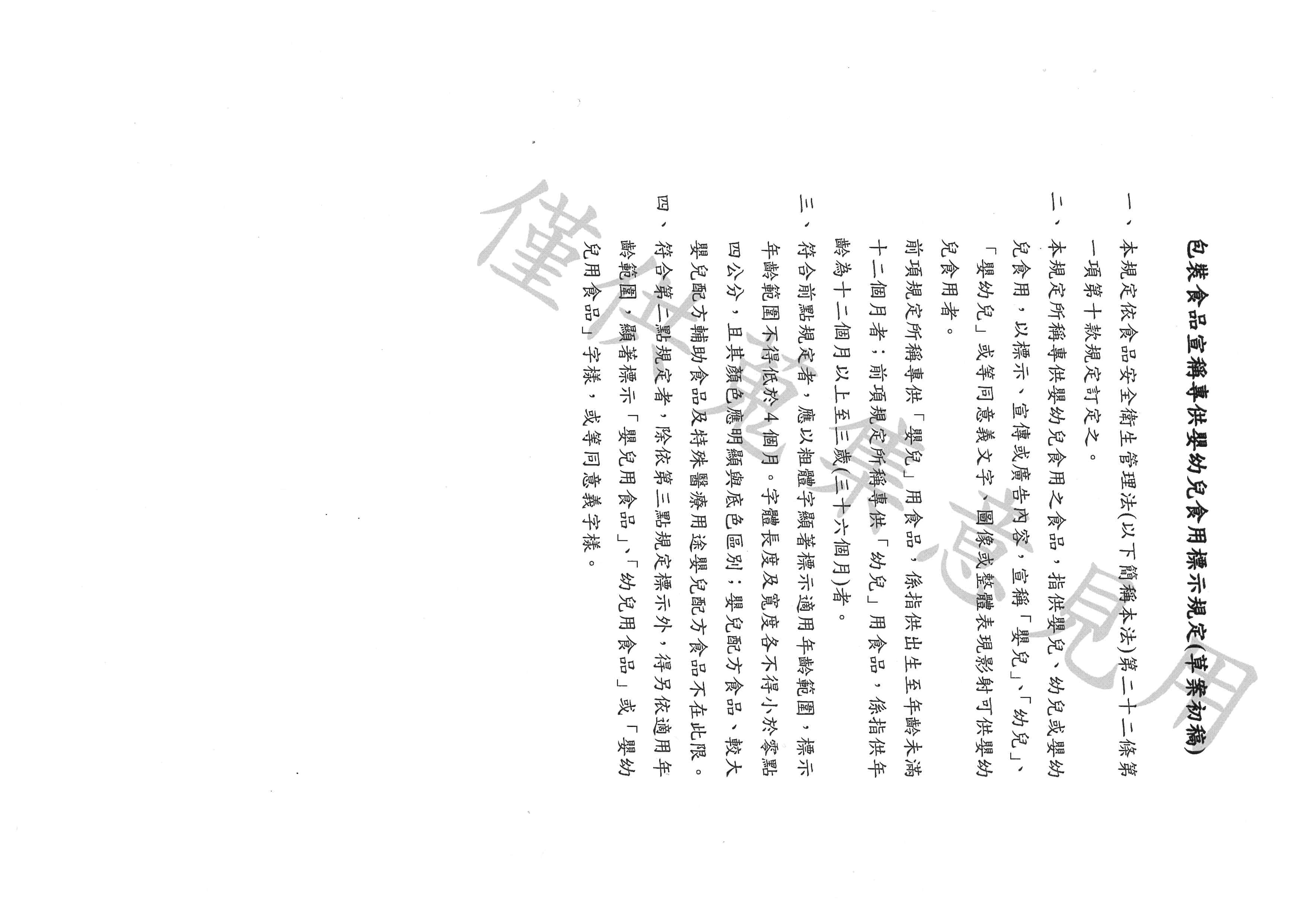 檢送「包裝食品宣稱專供嬰幼兒食用標示規定」草案初稿1份(如附件),敬請轉知所屬單位或會員,如有增修建議,請 貴單位彙整後於115年3月9日前函復,請查照。 2026-03-06 詳函文說明,若有增修建議,請3/9中午前提供。 回上頁