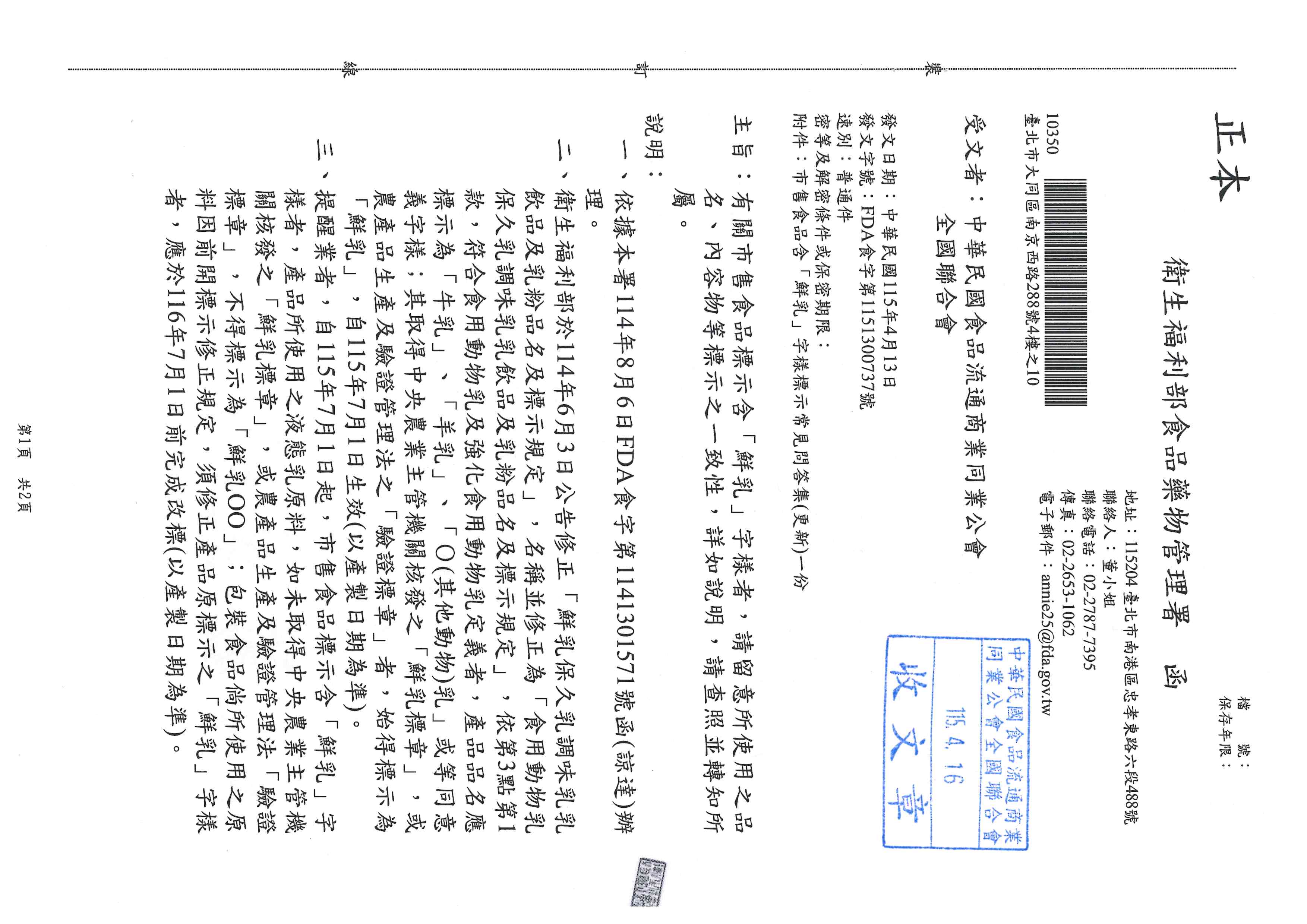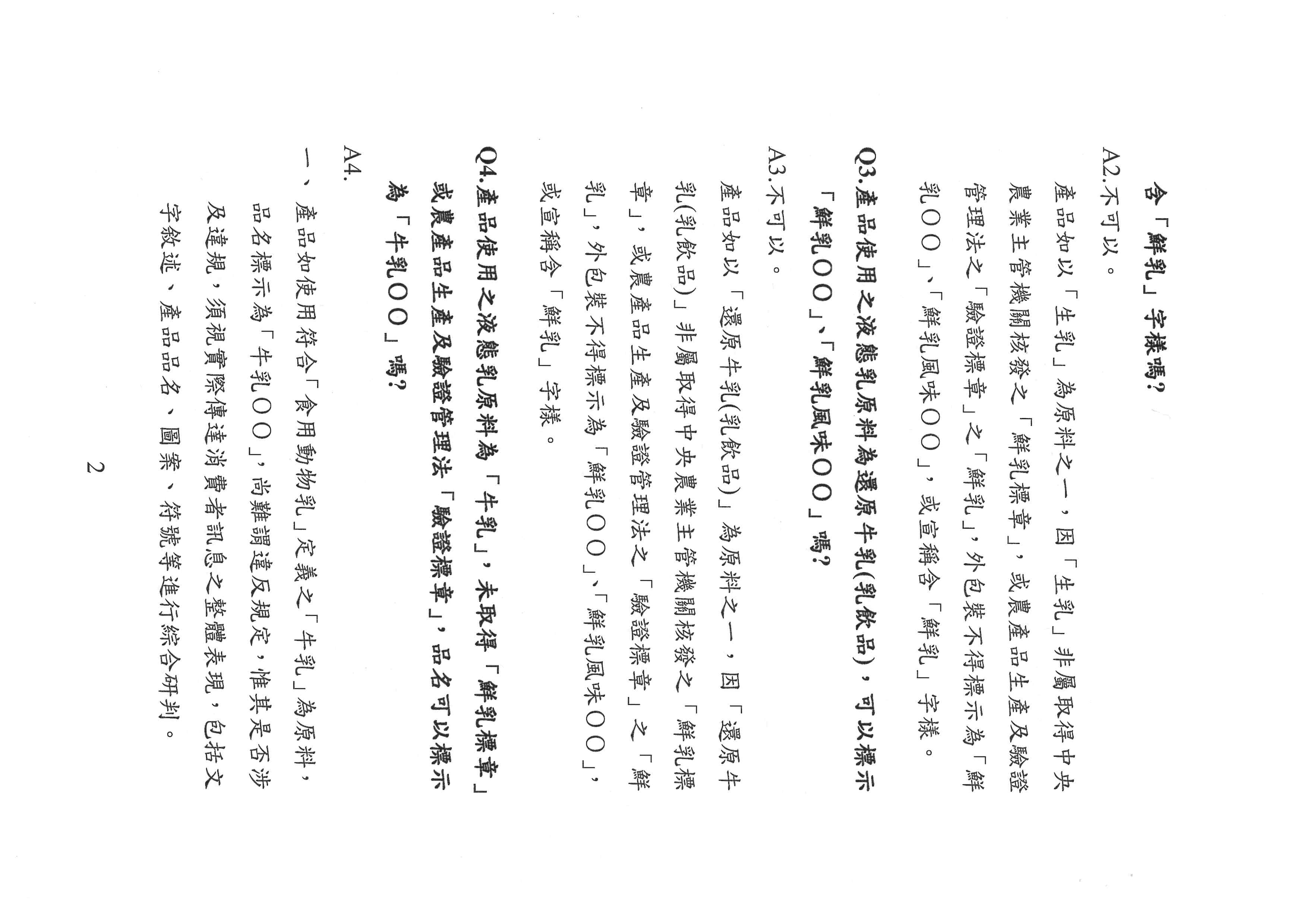 有關市售食品標示含「鮮乳」字樣者,請留意所使用之品名、內容物等標示之一致性,詳如說明,請查照並轉知所屬。